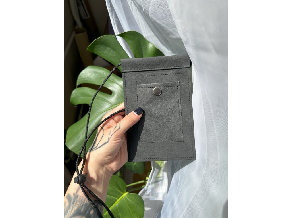Minimalistická kapsička na telefon ušitá z pratelného papíru.
