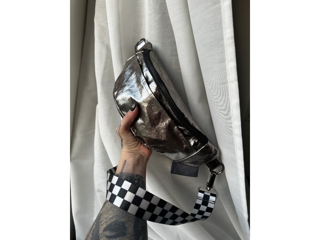 Prostorná ledvinka půlkruhového střihu. Na předním díle se nachází dvě kapsy, zapínání je na zip a popruhy lze regulovat dle potřeby. Ledvinku ráda zhotovím i v jiném barevném provedení.