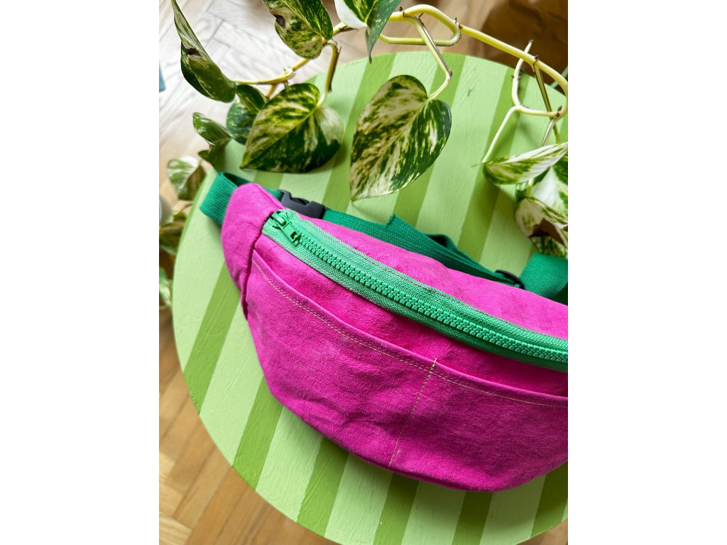 Prostorná ledvinka půlkruhového střihu. Na předním díle se nachází dvě kapsy, zapínání je na zip a popruhy lze regulovat dle potřeby. Ledvinku ráda zhotovím i v jiném barevném provedení.