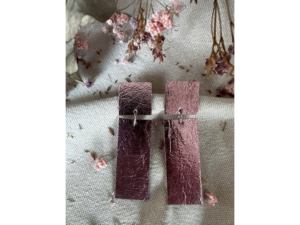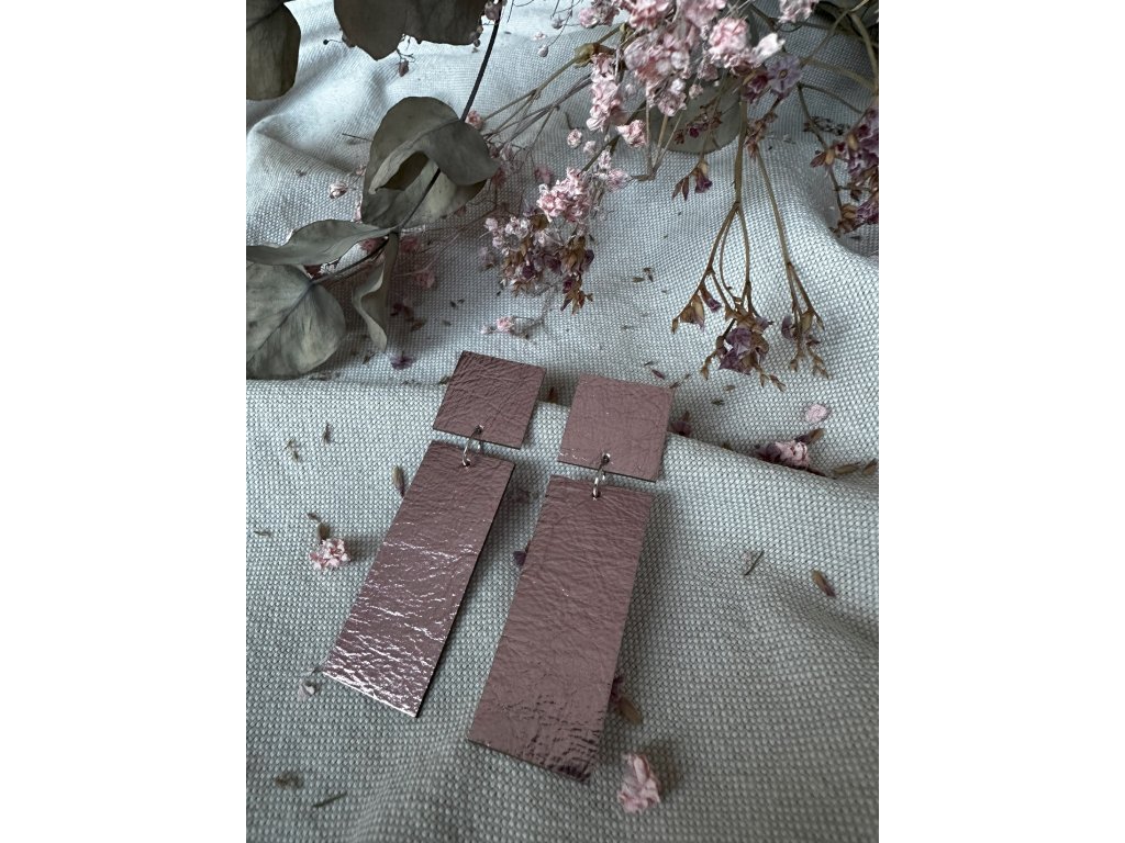 - Náušnice z růžového pratelného papíru se stříbrnými komponenty.